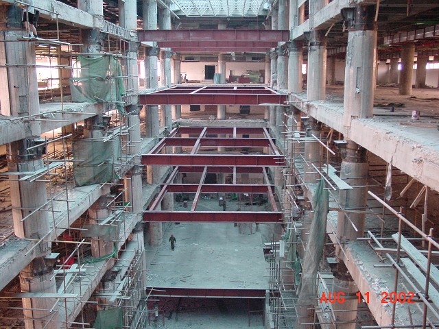 八一銀座大梁包角鋼加固處理