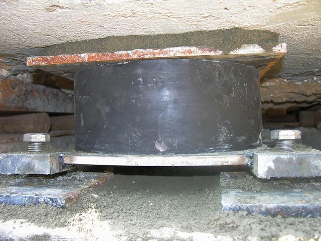 通過現(xiàn)場(chǎng)動(dòng)力測(cè)試,證明鉛芯橡膠隔振支座與滾軸共同承受上部結(jié)構(gòu)傳來的荷載,可明顯提高建筑物的抗震能力。