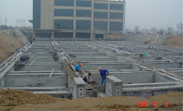 該建筑為框架—剪力墻結構,由主樓和裙樓兩部分組成,主樓地下1層,地上15層,裙樓地下1層,地上3層,長72.8m,寬41.3m,占地面積2700m2,總建筑面積24000m2,總高度67.6m, 基礎采用筏板基礎。