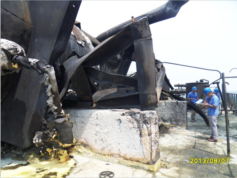 魯西化工集團股份有限公司雙氧水裝置主框架位于魯西化工工業(yè)園內(nèi), 4層框架結(jié)構(gòu),建筑總高度為31.00m。2013年07月27日下午16時45分左右,雙氧水裝置萃取塔失火發(fā)生爆炸,之后消防隊員趕到,進行了撲救,雙氧水裝置萃取塔著火時間約11小時。