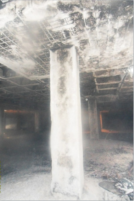 茌平縣安居康城16#-17#樓地下車(chē)庫(kù)總建筑面積3767.18m2,車(chē)庫(kù)混凝土澆筑時(shí)間是2012年12月11日-13日,2013年01月11日17:40左右,車(chē)庫(kù)樓板下方的塑料模殼著火,約1小時(shí)后消防隊(duì)員撲滅火災(zāi)。